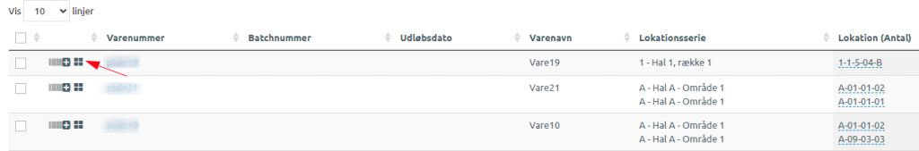 - Find varen, og klik på gitter-ikonet ( ⊞ ).
